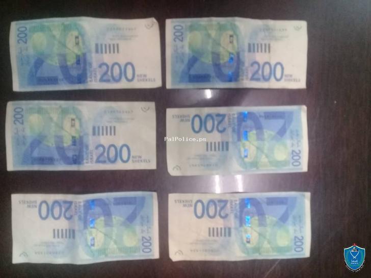 وذكر بيان إدارة العلاقات العامة والإعلام بالشرطة، أنه وبناء على معلومات توفرت لدى فرع مكافحة المخدرات بشرطة سلفيت وبالتعاون مع جهاز الأمن الوقائي، بوجود شخصان يقومان بتداول نقود مزيفه، تحركت قوة من فرع مكافحة المخدرات وألقت القبض عليهما وضبطت بحوزتهما 1600 شيكل من فئة المائتان يشتبه بكونها مزيفه.