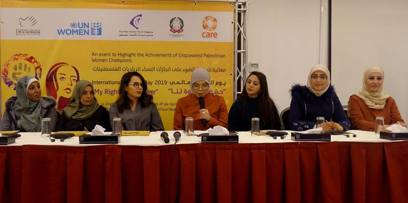 احتفل الشركاء في كل من منتدى سيدات الأعمال ومنظمة كير العالمية وهيئة الأمم المتحدة للمرأة والتعاون الإيطالي للتنمية يوم الأربعاء 06 آذار 2019 بيوم المرأة العالمي من خلال فعالية لتسليط الضوء على انجازات النساء الرياديات الفلسطينيات بمناسبة يوم المرأة العالمي (الثامن من آذار) بحضور عدد كبير من المؤسسات الدولية ومؤسسات المجتمع المدني والقناصل والممثليات والنساء الرياديات.