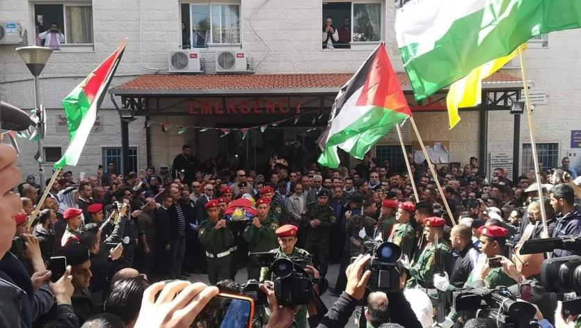 وانطلق الموكب الجنائزي من أمام مستشفى بيت جالا الحكومي، وصولا الى مسقط رأسه، حيث ألقيت عليه نظرة الوداع الأخيرة.