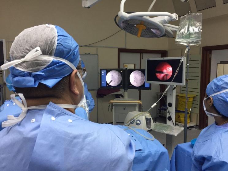 وتابع: "باستخدام التصوير الملون (الدوبلر)، استطعنا أن نرى في المساحة المملوءة بالسوائل وجود جنين آخر صغير جدا، مدعوم بحبل سري يمتص التغذية باتصاله بأمعاء التوأم الأكبر حجما".