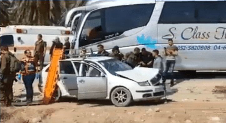 بين حافلة اسرائيلية ومركبة فلسطينية