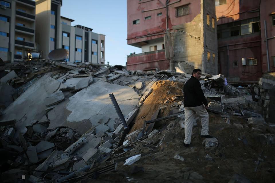 -قصف بناية حسونة المكونة من 4 طبقات تضم 8 شقق سكنية وأسفلها مخازن مستأجرة من الأمن الداخلي، وتقع غرب مدينة غزة. قصف الاحتلال البناية بـ 8 صواريخ متتالية بعد الاتصال بأحد السكان وإبلاغه بإخلائها، ودمرت بالكامل ولحقت أضرار واسعة بالمباني المجاورة. ونتيجة القصف تشردت 9 عائلات قوامها 41 فردا منهم 25 طفلا 9 نساء.