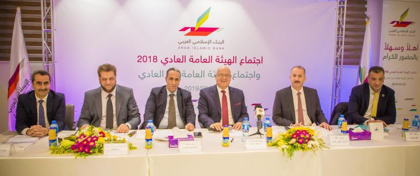 عقدت الهيئة العامة للبنك الإسلامي العربي اجتماعها السنوي العادي للعام 2018 واجتماعها غير العادي يوم الاثنين الموافق 25/3/2019 في مبنى الإدارة العامة للبنك في رام الله، برئاسة الأستاذ الدكتور عاطف علاونة رئيس مجلس إدارة البنك وأعضاء مجلس الإدارة، والمدير العام السيد هاني ناصر ورئيس هيئة الفتوى والرقابة الشرعية في البنك د. جمال الكيلاني و مراقب الشركات في وزارة الاقتصاد الوطني السيد طارق المصري وممثلين عن كل من سلطة النقد الفلسطينية وهيئة سوق رأس المال و بورصة فلسطين ومدقق الحسابات الخارجي (Ernst & Young) إرنست و يونغ، وبحضور ما مجموعه حوالي 91.53% من حملة أسهم البنك، و كاتب الجلسة الاستاذة أديبة عفانة.