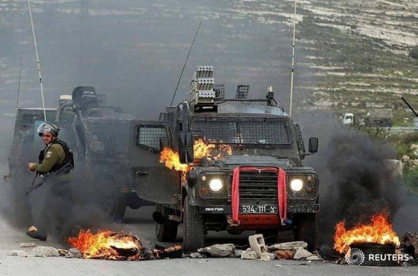 احتراق دورية لجيش الاحتلال بزجاجة حارقة في مواجهات البيرة