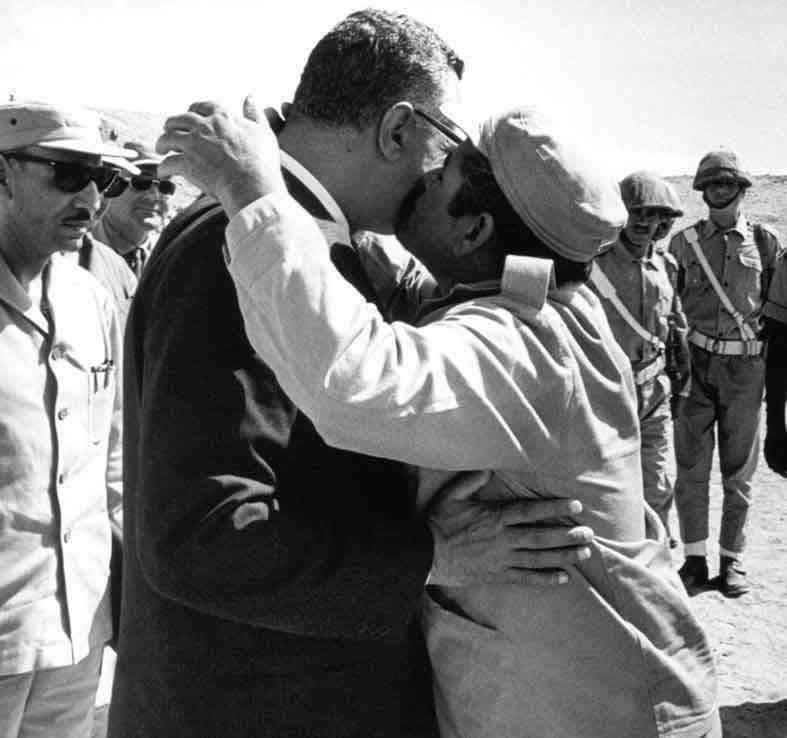 وضمت الصور مجموعة لقاءات للرئيس الراحل مع بعض الجنود والضباط، حيث قام أحدهم بتقبيله ليظهر مدى حبه له.