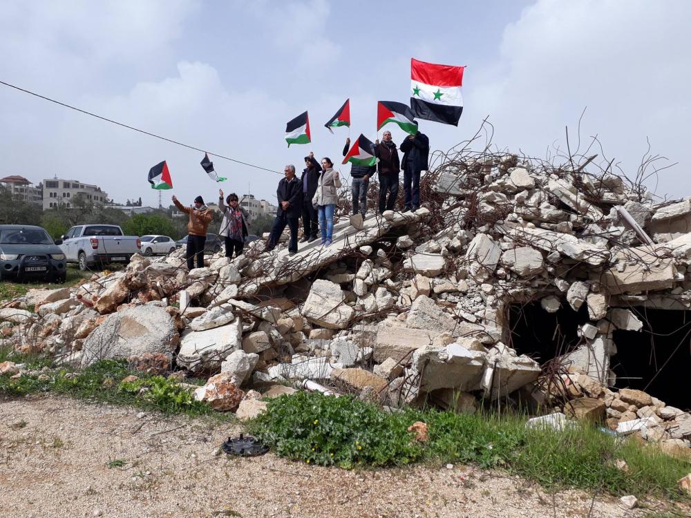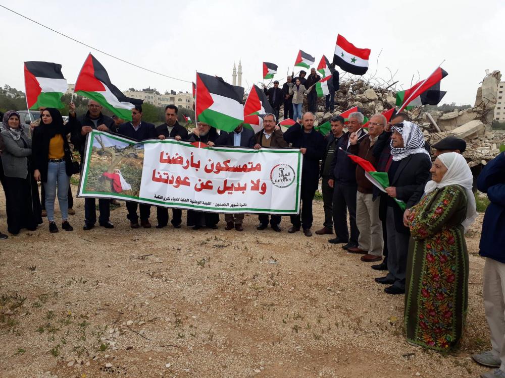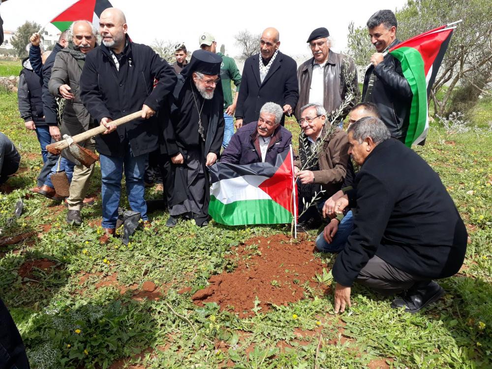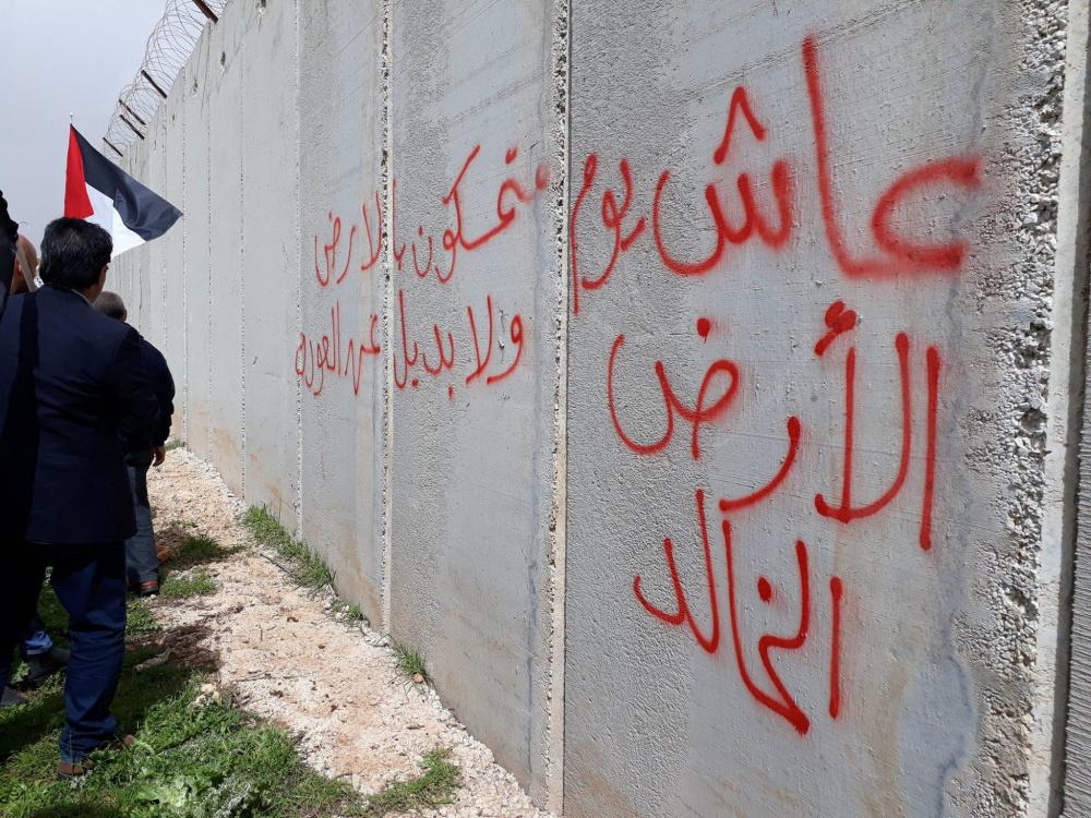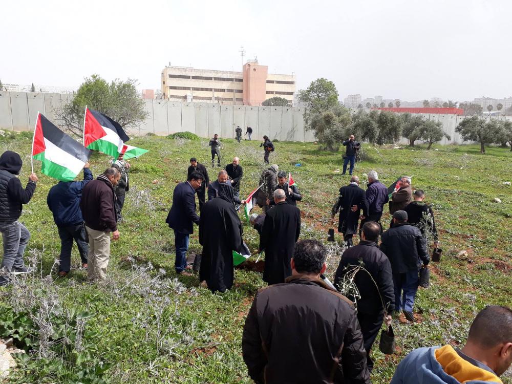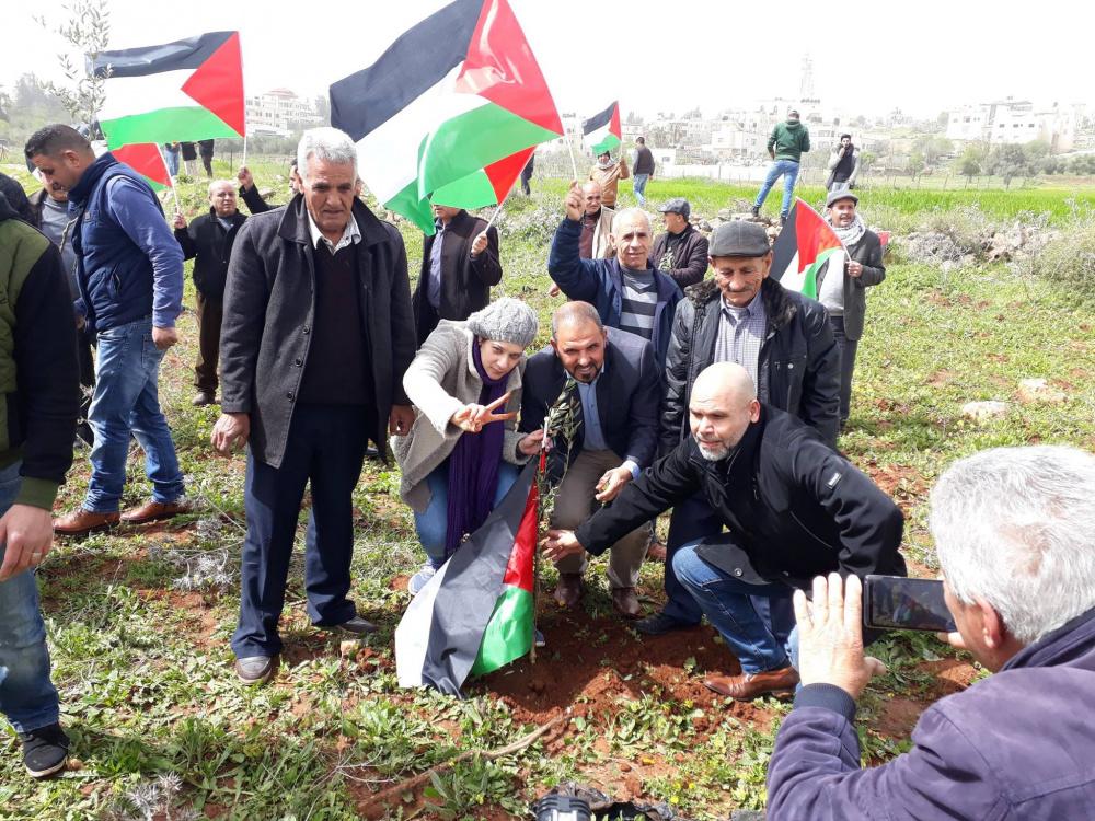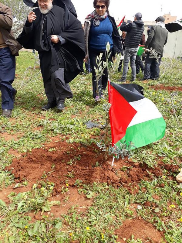 واختتمت المسيرة بزراعة أشتال الزيتون في الأراضي المهددة ورفع أعلام فلسطين على الجدار العنصري، حيث خط النشطاء عليه عبارات وطنية تؤكد التمسك بالأرض الفلسطينية والمقاومة الشعبية وعروبة الجولان السوري المحتل.