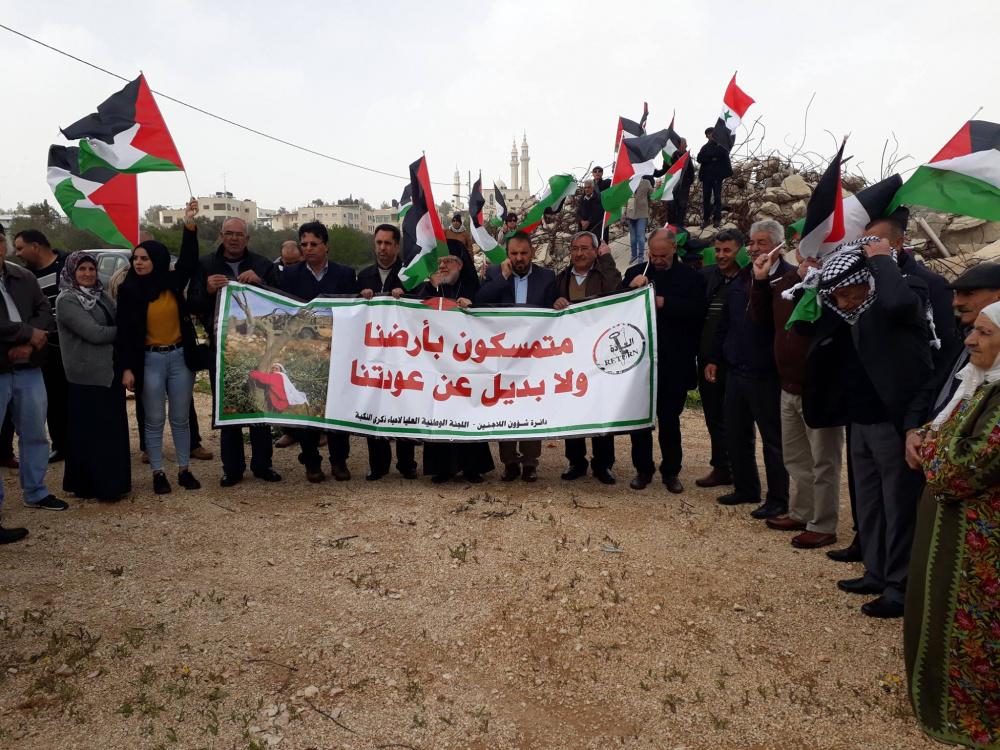 وقال عضو اللجنة التنفيذية لمنظمة التحرير واصل أبو يوسف، في كلمة له خلال المسيرة: "ارتأينا إطلاق فعاليات إحياء يوم الأرض من هذه القرية للفت الأنظار لما تتعرض له من عمليات مصادرة وهدم وترحيل متواصلة؛ فهي نموذج صارخ لما تتعرض له الأرض الفلسطينية من استباحة من قبل الاحتلال الإسرائيلي".