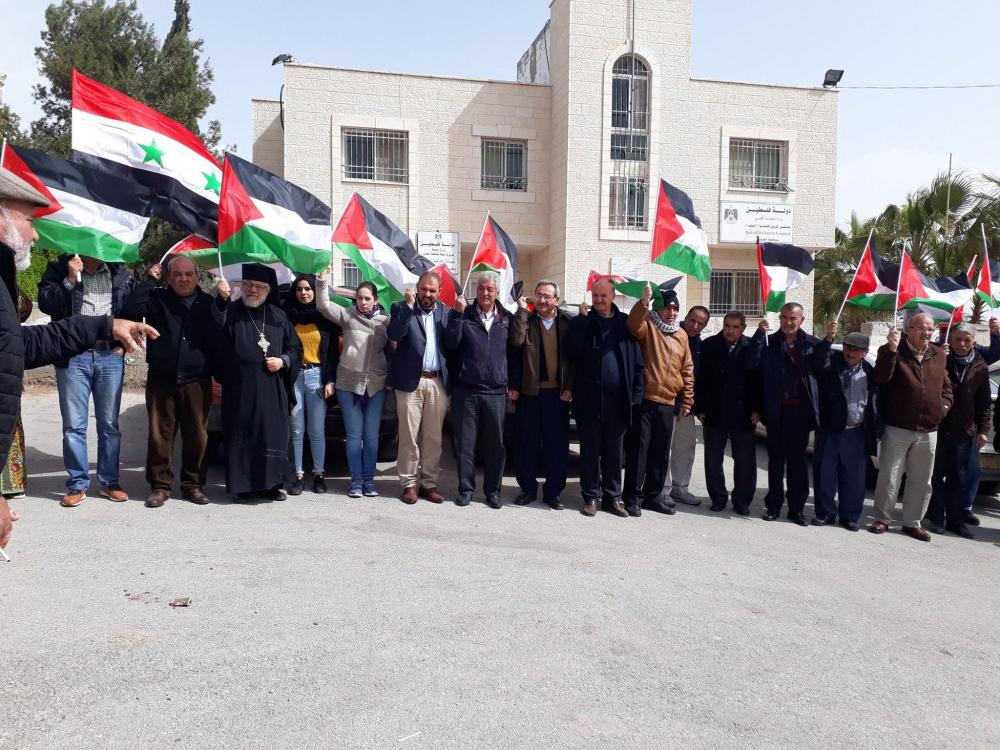من جانبه، أكد مدير عام وزارة شؤون القدس سعيد يقين، ضرورة تجسيد الوحدة الوطنية ونبذ أصوات الانقسام، مبرقا التحية للإخوة السوريين الصامدين في الجولان السوري المحتل، مشددا على بطلان وانعدام الأثر القانوني لكل القرارات الأميركية تجاه فلسطين والجولان".