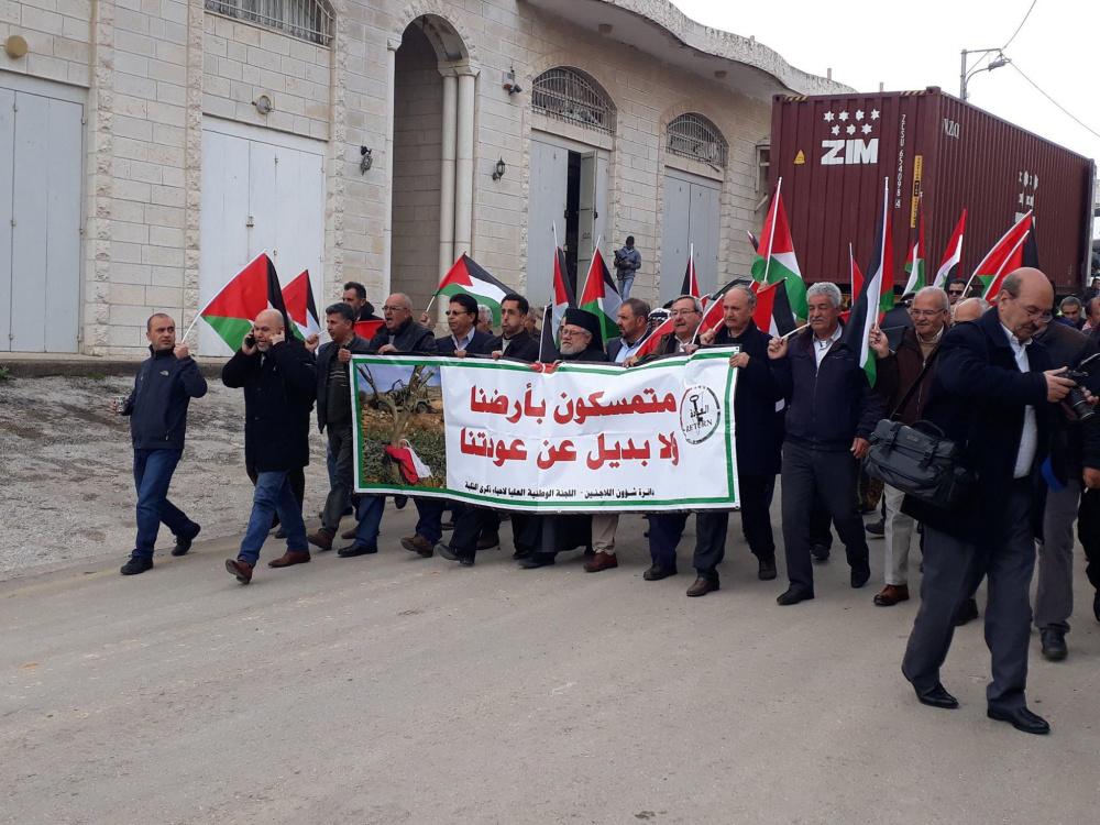 بدوره، قال عضو هيئة العمل الشعبي في منطقة شمال غرب القدس حسام الشيخ، إن هذه الفعالية نظمتها هيئة العمل الشعبي والقوى الوطنية في منطقة شمال غرب القدس، تأكيدا على تمسكنا ووحدتنا تجاه الأرض الفلسطينية ورفضا لسياسة نتنياهو وترمب الهادفة إلى تفريغ فلسطين من أهلها.