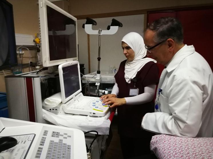 "قمنا بتجهيزه واضافه خدمة نوعية متميزة أعتقد أنها الأولى في فلسطين وليست في مستشفى الأهلي فقط وهي "Endoscopic Altrasound" جهاز التصوير التلفزيوني الداخلي من خلال المناظير الذي يستخدم في عدة أمور طبية " قال الأشهب، متابعًا "من أهمها تشخيص الأورام الداخلية مثل البنكرياس، تقييم الورم في الخلايا اللمفاوية، الحصول على التشخيص دون عملية جراحية، التخلص من بعض السوائل دون عمليات جراحية".