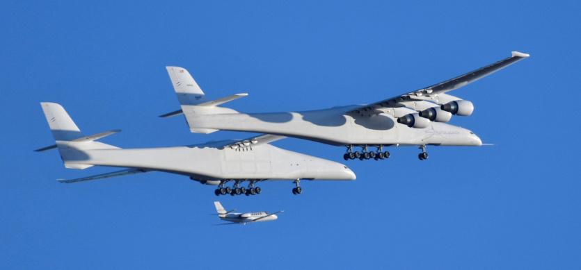 على ارتفاع 15 ألف قدم، أي ما يعادل 4.572 مترًا، ومن قاعدة "موهافي" الجوية بولاية كاليفورنيا الأمريكية، انطلقت أضخم طائرة في العالم، في أول رحلة تجريبية لها، وفقًا لـ "بي بي سي".