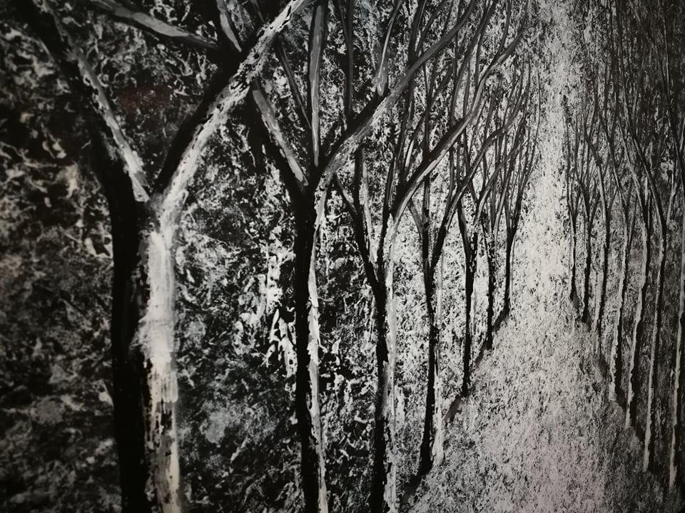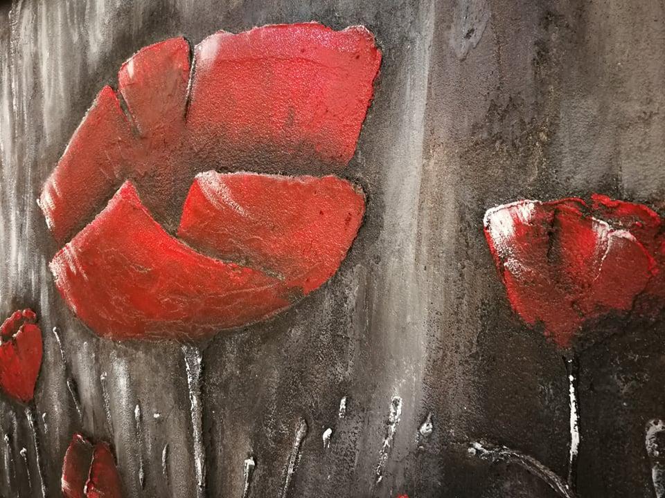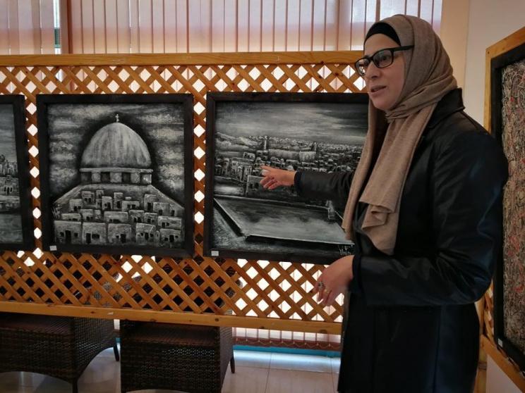الفنانة التشكيلية وفاء الأدهمي، خليلية، أم لبنت واحدة وخمس أولاد، تعثرت بموهبتها عندما كانت طفلة، لكنها إنقطعت عن الرسم منذ زواجها لمدة (17 عامًا) حتى وجدت أنها قادرة للعودة لما تحب كونها تمتلك الطاقة والوقت للرسم، غير أنها قررت الرسم بلون جديد عبر استخراج عجينتها الخاصة.