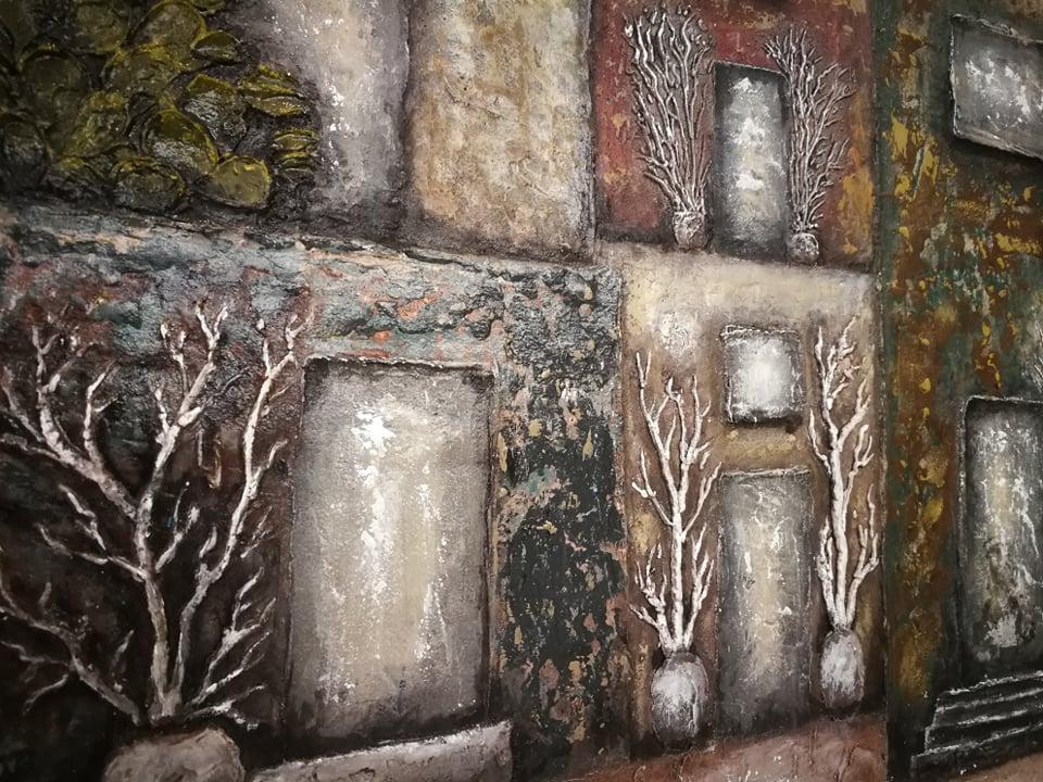 ربّما يخيّل لكثير أن المطبخ المنزلي لا تتجاوز مهامه أكثر من طهي الطعام وتوابعه، غير أن وفاء الأدهمي تطهو في مطبخها وجبات غذائية وأخرى روحية غاية في الإبداع، فعلى طاولة السفرة تخلط عجينتها الخاصة، ثم تشكل لوحتها بالطين حتى ينشف، فتبدأ عملية التلوين والرسم لتخرج بلوحة فنية تحاكي أبجديات أفكارها والواقع المعاش.