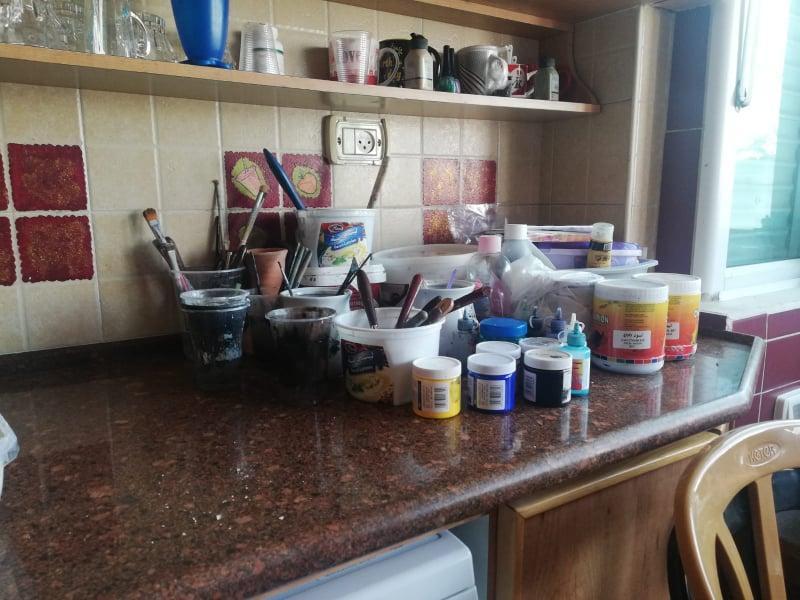 على مجلى وفاء، تركن أدوات الرسم، من ريش وألوان ومواد عجينتها التي تعجنها وفق الحاجة والكمية، وهي سرّ مهنتها وابداعها الخاص كما تقول ." مجموعة من المكونات أخلطها ببعض فتنتج عجينة وهي مكونات خاصة بي، وأنا عملت تعديل على المكونات عدة مرات على مدار ثلاث سنوات، حتى وصلت لعجينة جيدة للألوان والإلتصاق وكل ما يهمني بلوحاتي وجماليتها".