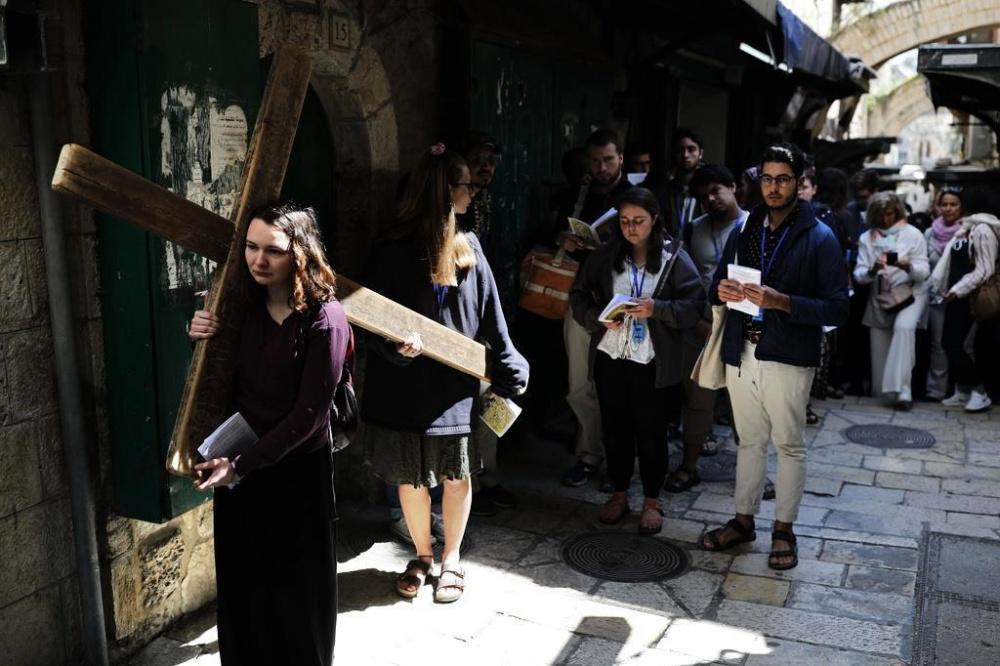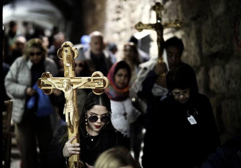 أحيت الكنائس المسيحية في فلسطين التي تسير حسب التقويم الغربي، "الجمعة العظيمة"، عبر السير في "درب الآلام" في شوارع القدس القديمة.