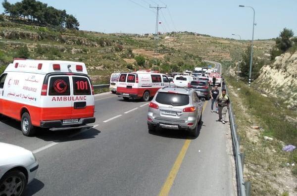 أصيب ١٠ مواطنين، اليوم السبت، في حادث سير، على الشارع الالتفافي بالخليل.