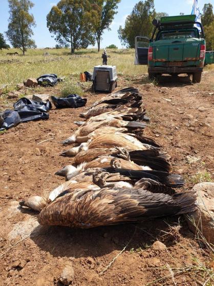 أعلنت ما تسمى بـ "سلطة المحميات الطبيعة والمنتزهات" الاسرائيلية، أنه تم العثور على 8 نسور نافقة، من بين النسور العشرين المعروفة بأنها تعيش في مرتفعات الجولان.