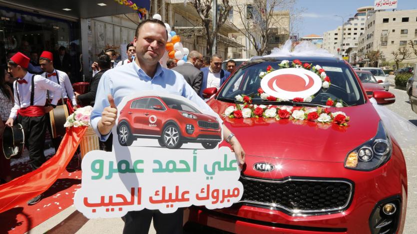 وقد جرى مفاجأة الفائز بالسيارة من أمام معرض حضارة في الخليل، بحضور من إدارة الشركة وعدد من موظفيها الذين شاركوا الفائز أجواء من الفرح والسعادة غمرت الفائز في وسط شوارع المدينة .