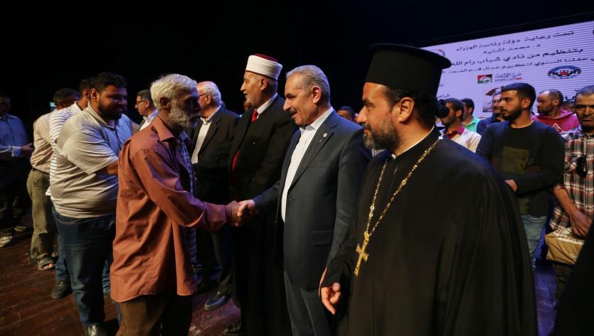 كرّم رئيس الوزراء محمد اشتية، امس الخميس بمدينة رام الله، عمال وموظفي قسم الصحة "أصدقاء البيئة"، في بلديات رام الله والبيرة وبيتونيا، وذلك خلال حفل نظمه نادي شباب رام الله.