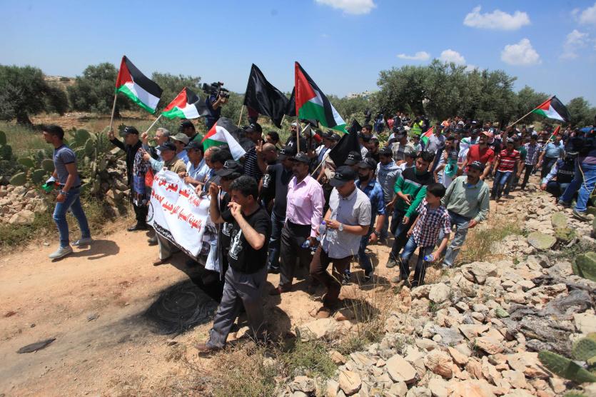 وكانت المسيرة قد انطلقت عقب صلاة الجمعة بمناسبة الذكرى الـ71 للنكبة، ورفع المشاركون فيها العلم الفلسطيني ورايات النكبة السوداء.