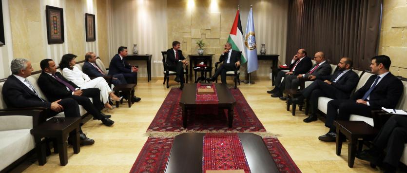 التقى رئيس الوزراء د. محمد اشتية، اليوم الأحد في مكتبه برام الله، رئيس مؤسسة YPO العالمية باسكال غيركن، بحضور أعضاء المؤسسة لفرع فلسطين.