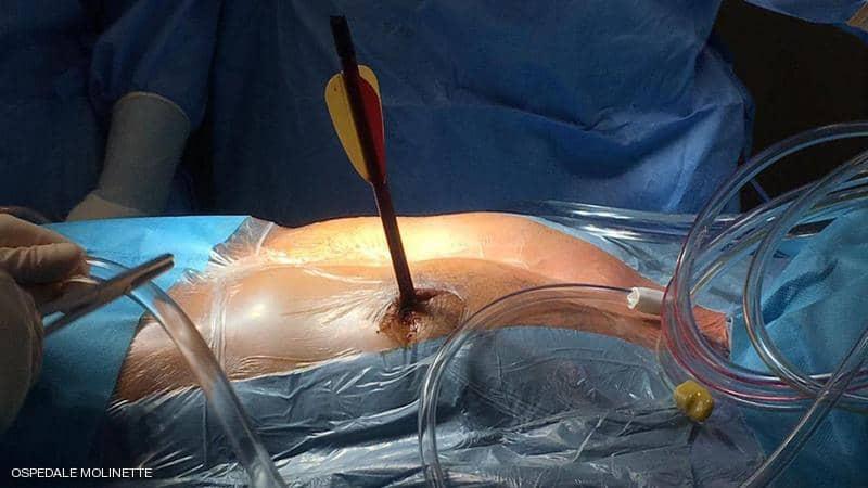 وحسب ما نقله موقع "سكاي نيوز" عن شبكة "فوكس نيوز" الإخبارية، فإنه الرجل الذي اخترق السهم جسمه وأصابه في منطقة القلب تحديدا، استطاع أن يسير على قدميه إلى المستشفى، بمدينة تورينو شمالي إيطاليا.