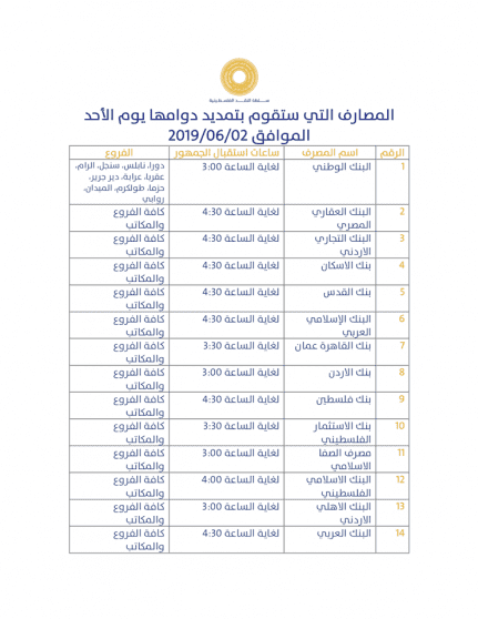 قائمة البنوك التي ستعمل غداً الإثنين