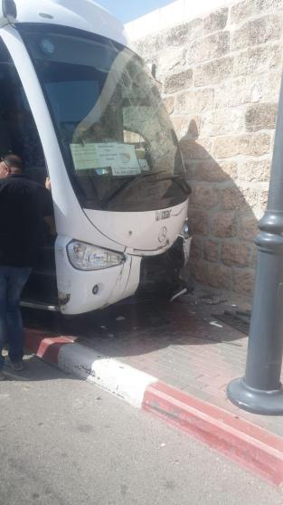 بالفيديو ... حافلة سياحة تتسبب بحادث سير في بيت ساحور