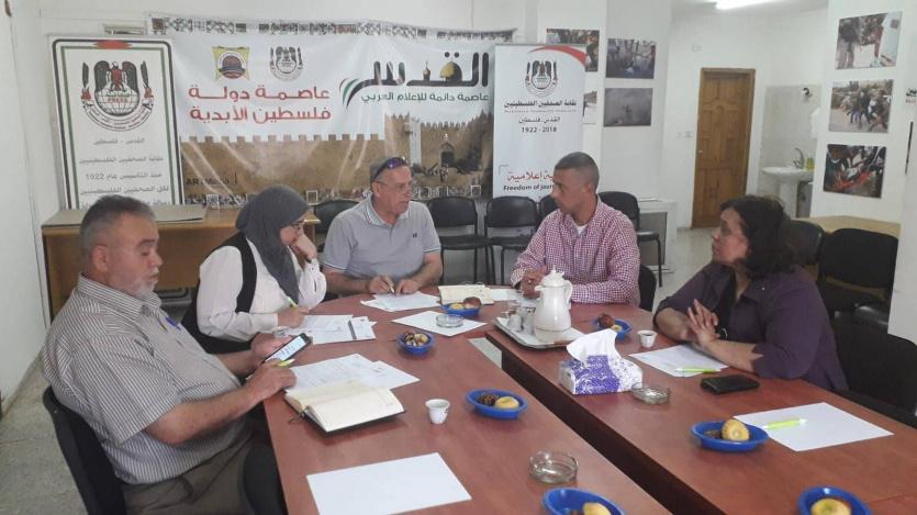 عقدت اللجنة الفنية لمشروع "أكاديمية الشباب من اجل الديمقراطية" اجتماعا لها في مقر نقابة الصحفيين، صباح اليوم، للبدء بالتدريب والمشاركة لاعضاء النقابات الثلاث المشاركة في المشروع في فلسطين.
