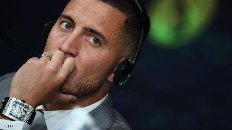ركزت عدسات المصورين على ساعة يد ارتداها نجم ريال مدريد الجديد إيدن هازارد، أثناء المؤتمر الصحفي على هامش تقديمه رسميا كلاعب في الفريق الإسباني.
