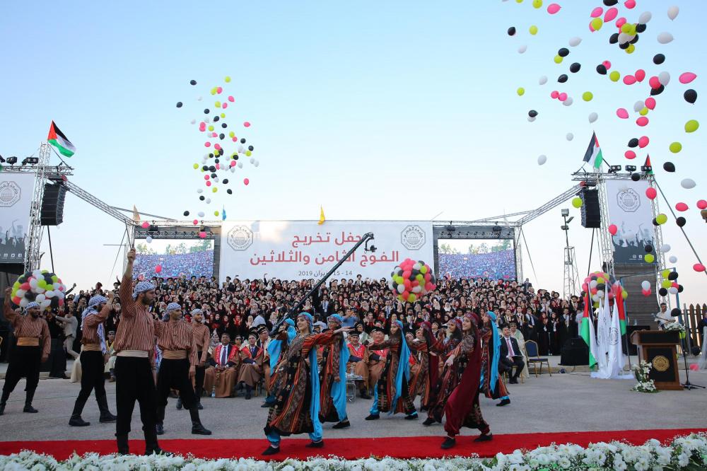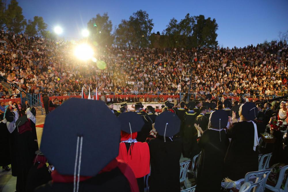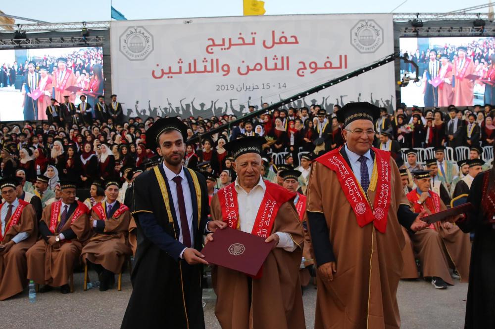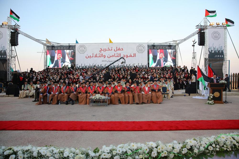 احتفلت جامعة القدس، اليوم الجمعة، بتخريج الدفعة الأولى من "الفوج الثامن والثلاثين"، في الحرم الرئيس، وذلك بمشاركة رئيس مجلس أمناء جامعة القدس دولة الأخ أحمد قريع، وسعادة رئيس الجامعة أ.د. عماد أبو كشك، وأعضاء مجلس الأمناء ونواب الرئيس وأكاديميين، وممثلي المؤسسات الرسمية والمجتمعية والإعلامية المختلفة ،والآلاف من أهالي الخريجين لكليات "الطب البشري، طب الاسنان، الصيدلة، المهن الصحية، الصحة العامة، كلية القدس بارد، العلوم والتكنولوجيا ونجاد زعني للهندسة".