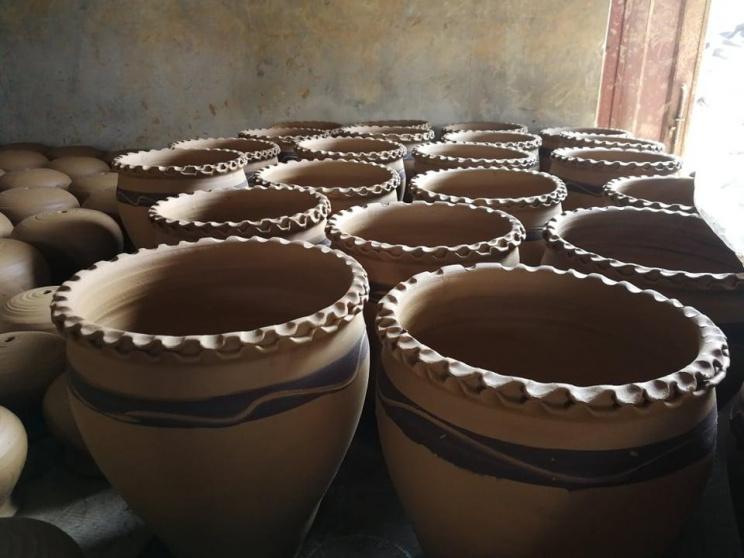 قبل لملمة الأواني الفخارية التي صنعها الفواخرجي راتب وأولاده الثلاثة الذين يشاركونه العمل مع حفيده، ذهب يشرح خطوات صناعة الفخار "أول خطوة نحضر القلالة، وهي تراب أصفر، سمقة، رمل، نخلطهم في الماء ونصفيهم من الحصى في بركة مخصصة ثم نخرجه من البركة إلى بركة أخرى لتجف، وعندما تتماسك نضعها في آلة خاصة ونعجنها لنبدأ بالعمل فيها على الدواليب".