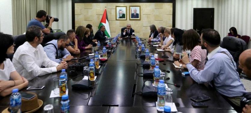 جاء ذلك خلال استقباله، ، في مكتبه برام الله، وفدا من الصحفيين الرومانيين، بحضور وزيرة السياحة والآثار رولا معايعة، والمتحدث الرسمي باسم الحكومة إبراهيم ملحم، والسفير الروماني لدى فلسطين كاتالين تريليا، حيث وضعهم في صورة الأوضاع وآخر التطورات السياسية.