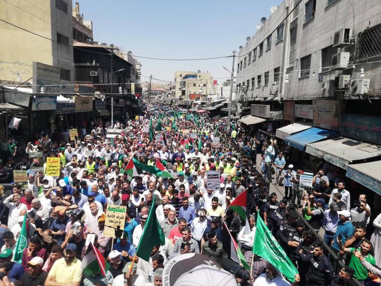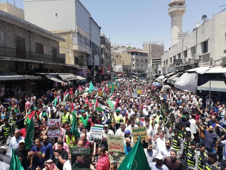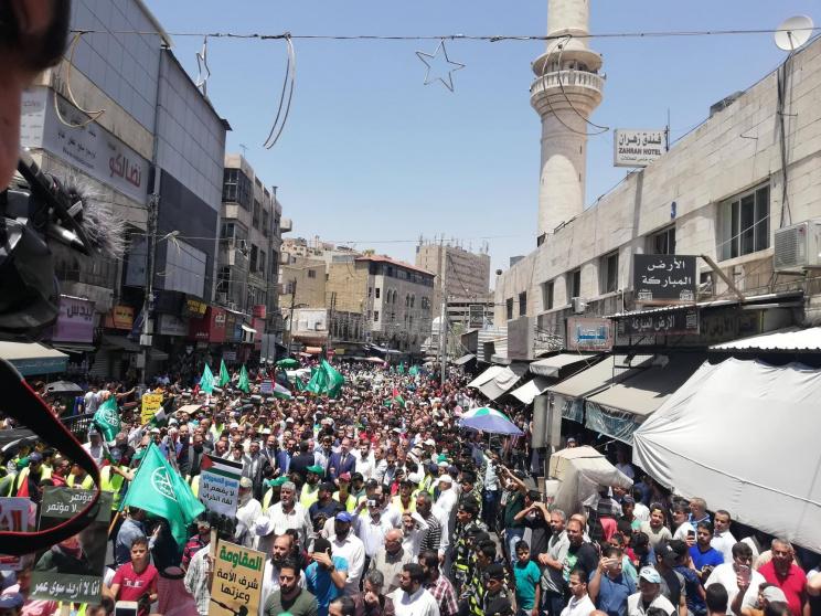شهدت العاصمة الاردنية عمان، الوم الجمعة، إلى جانب عدد من المدن الأردنية، مظاهرات حاشدة نصرة للقضية الفلسطينية، ورفضا لصفقة القرن ومؤتمر البحرين الذي سيعقد في المنامة الاسبوع المقبل.