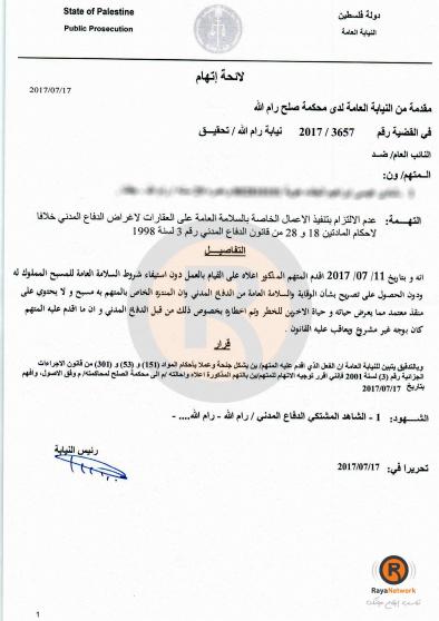وقال رئيس النيابة إنه تم توجيه تهمة التسبب بالوفاة نتيجة التقصير في اتخاذ إجراءات ووسائل السلامة العامة والتي يعاقب عليها قانون العقوبات الأردني المطبق في فلسطين بالحبس 3 سنوات.
