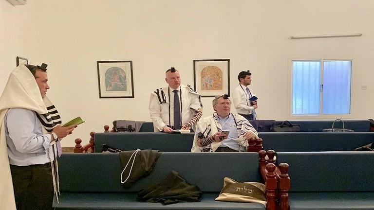This morning, at the tiny synagogue in Manama #Bahrain, a group of Jewish attendees at the