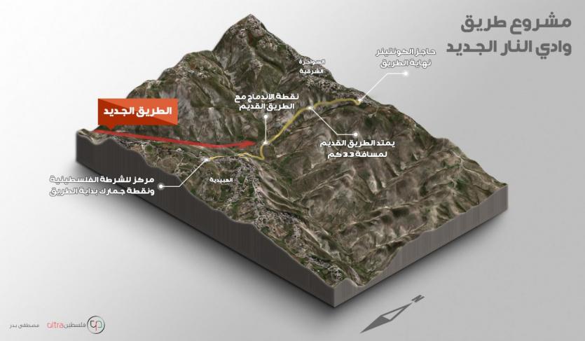 ووفقاً للمخططات المعتمدة من قبل الجهات المختصة فإن الطريق الجديد سيبلغ طوله 5600 متراً، منها 2500 متر قائمة بالفعل، بينما يتبقى 3100 متر بحاجة إلى شق، فيما سيبدأ الطريق من منطقة جسر بيت ساحور ثم يمر من مفترق قريتي الخاص والنعمان مرورا بالمنطقة الشمالية لبلدات العبيدية ودار صلاح وحتى أخفض منطقة في وادي النار وهناك تواصل المركبات سيرها على الطريق القديم حتى الوصول لبلدة السواحرة الشرقية.
