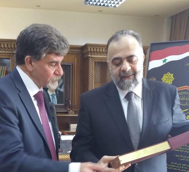 كما سلم السفير عبد الهادي، حسب بيان للدائرة، رسالة شكر من الرئيس محمود عباس لوزير الأوقاف السوري على كتاب التفسير الجامع للقرآن الكريم الذي أهداه للرئيس مسبقاً.