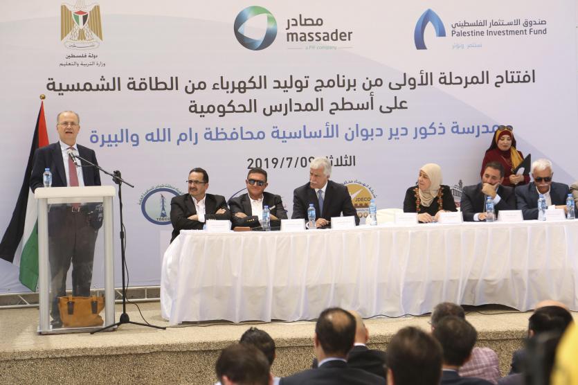 وتم اليوم في مدرسة ذكور دير دبوان الأساسية بمحافظة رام الله والبيرة، إطلاق المرحلة الأولى من برنامج توليد الكهرباء من الطاقة الشمسية على أسطح المدارس الحكومية.