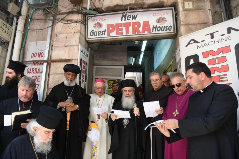 نظم بطاركة و رؤساء كنائس القدس اليوم مسيرة وصلاة جماعية في باب الخليل بمدينة القدس، تلاها زيارة الى العقارات الارثوذكسية المُهددة بالاستيلام عليها من قبل جمعية عطيريت كوهانيم الاستيطانية، كما تضمنت الفاعلية كلمات ولقاءات صحفية.