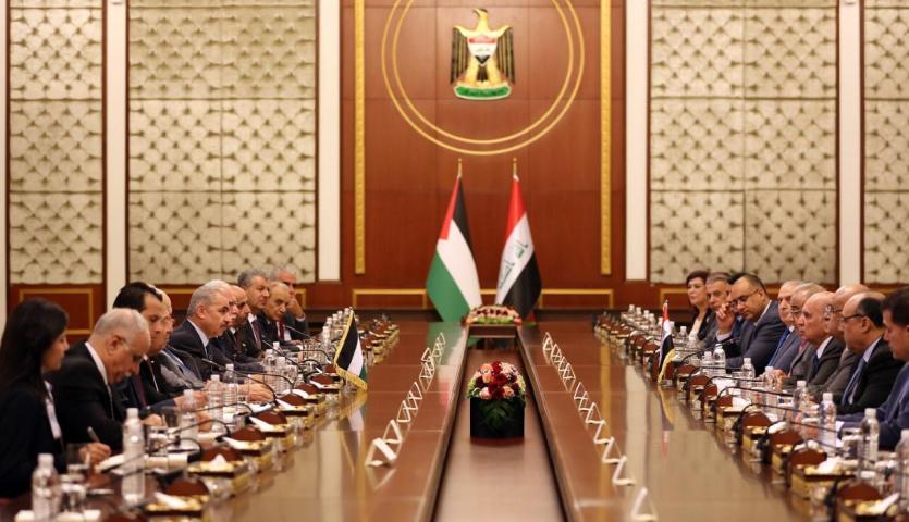 وعبّر رئيس الوزراء عن بالغ شكره وتقديره للاستضافة الأخوية والاستقبال الدافئ من الحكومة العراقية، ناقلا تحيات السيد الرئيس محمود عباس الذي حرص على هذه الزيارة لاستكمال مخرجات زيارته الاخيرة لبغداد.