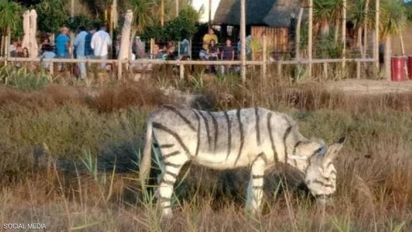 وبحسب ما نقل موقع "أندلسيا إنفورماسيون"، فإن حمارين باللون الأبيض جرى صبغهما بخطوط سوداء، حتى يبدوا مثل حمارين وحشين، في منطقة قادش، جنوبي إسبانيا.