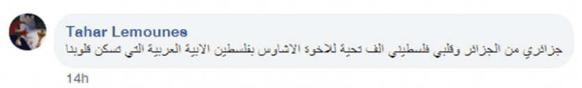 وما أن أطلقت شركة الاتصالات الخلوية الفلسطينية "جوال" الفيديو الذي وثق لحظات احتفاء الفلسطينيين بالضفة الغربية وغزة بتتويج الجزائر بكأس إفريقيا لسنة 2019، احتشدت التعليقات على الفيديو بحب الجزائريين الذين عبروا عن امتنانهم وشكرهم لبلدهم الثاني "فلسطين"، وكأن الفيديو تم نشره في أرض الجزائر أوعلى صفحة جزائرية.