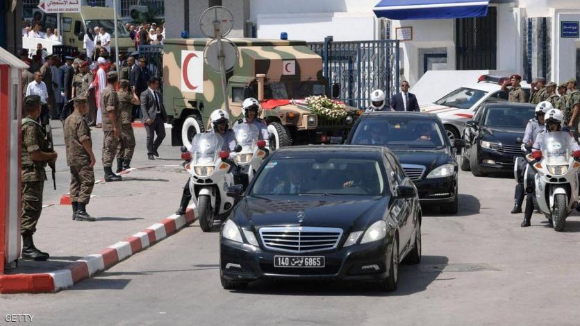 ونُقل جثمان السبسي الذي توفي عن 92 عاما صباح الجمعة، من المستشفى العسكري في العاصمة تونس إلى قصر قرطاج بالضاحية الشماليّة، في سيّارة عسكريّة لُفت بعلم البلاد، في ظل حراسة عسكرية وأمنية.