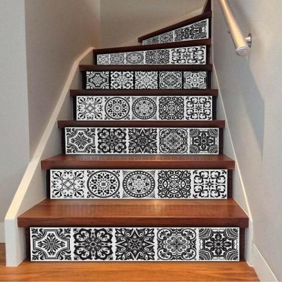 وللحصول على هذا المظهر الفريد، بحثت نيكول عن أفضل النقوشات للورق اللاصق على موقع أي باي، بالإضافة إلى طلاء باللون الرمادي للناحية العلوية من الدرجات.