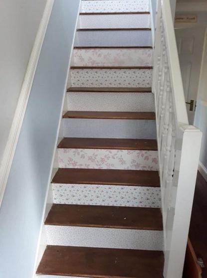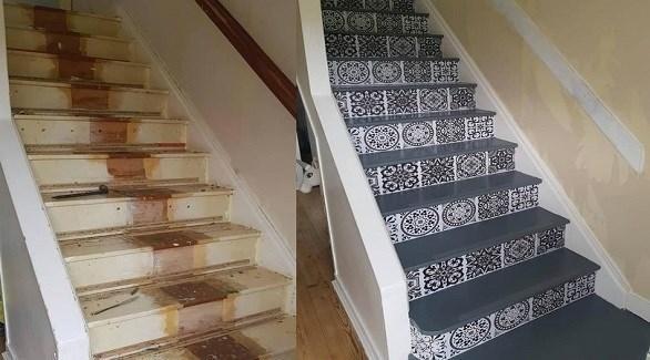 عندما شعرت أن السجادة الموجودة على درج منزلها بحاجة إلى استبدال، قررت سيدة بريطانية أن تأخذ الأمور على عاتقها، ومنحت الدرج مظهراً جذاباً بأقل تكلفة ممكنة.