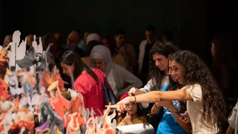 وحضر الافتتاح العشرات من جمهور وأهالي وأعضاء فرقة الفنون ومؤسسة عبد المحسن القطان.