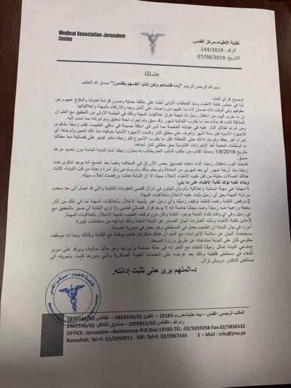 وكانت النيابة العامة، أصدرت بياناً، أوضحت فيه حيثيات قضية توقيف طبيب في مدينة قلقيلية.