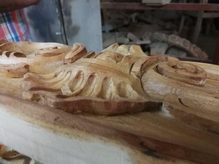 أفكار إبداعية تتمايل بينَ قلمِ رصاصٍ وورقٍ مقوى فتولدُ على خشبٍ ميت حتى تملؤه بالتفاصيل وتحييه مرة أخرى على هيئة زخارف خشبية يستعانُ بها لتزيين غرف النوم والصالونات وغيرها.