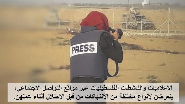 يذكر ان الصحافيات يتعرضن اثناء العمل ذات المخاطر والتحديات التي يواجهها الصحافيون، بدءاً من الاستهداف بالرصاص والاصابات الجسدية مرورا بالاعتقال والملاحقة وانتهاء بالمنع من التغطية من قبل سلطات الاحتلال، هذا فضلا عن أنهن عرضة للتمييز ووانتهاكات وتحديات أخرى اضافية مرتبطة بالثقافة المجتمعية السائدة.